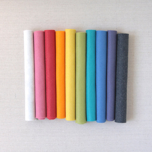 Benzie's wool blend felt in Graphite. Select cut sheets or yardage-multiples of 1/2 yard cuts will yield one uncut sheet. Our bolts are approximately 36" wide. Full bolts are 40% off the retail price of cut sheets. Inventory on full bolts is limited, please contact us for availability.