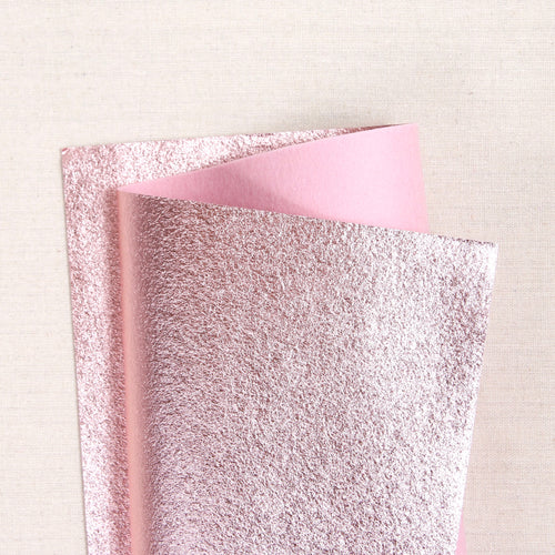 Shiny metallic blush pink looks like rose gold! Metallic finish is bonded to felt resembling soft lambskin leather. Soft and pliable use it any way you would use felt. Felt coordinates to wool blend felt in Peony.