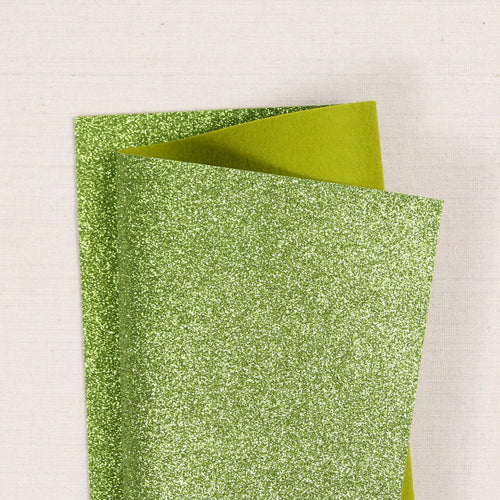 Add a bit of shine or a whole lot of sparkle with Benzie's glitter felt in bright Citron. The best part? The glitter sticks just where it needs too-no messy fairy dust to clean up! Glitter felt is rough and sparkly on the glitter side and soft and smooth just like the felt you are used too! Felt side coordinates with our Citron Felt. Use any way you use regular felt. Approximately 1mm thick.