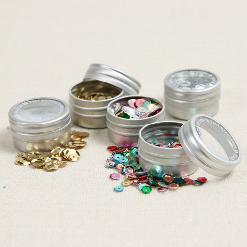 Metallic 8mm sequins catch the light and provide sparkle to your project. Includes a mix of sequins in the colors Silver, Gold, Bronze, Kelly, Pink, Red, Iridescent and White, 4 grams total. Hand tinned and made in the USA.