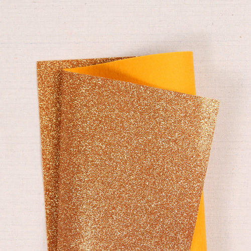 Add a bit of shine or a whole lot of sparkle with Benzie's glitter felt in Pumpkin orange. The best part? The glitter sticks just where it needs too-no messy fairy dust to clean up! Glitter felt is rough and sparkly on the glitter side and soft and smooth just like the felt you are used too! Felt side coordinates with our Tangerine Felt. Use any way you use regular felt. Approximately 1mm thick.