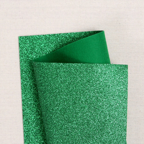 Add a bit of shine or a whole lot of sparkle with Benzie's glitter felt in Kelly green! The best part? The glitter sticks just where it needs too -no messy fairy dust to clean up! Glitter felt is rough and sparkly on the glitter side and soft and smooth just like the felt you are used too! Felt side coordinates with our Kelly felt. Use any way you use regular felt. Approximately 1mm thick.
