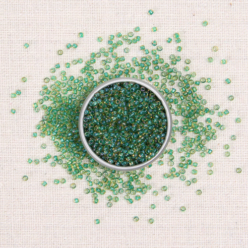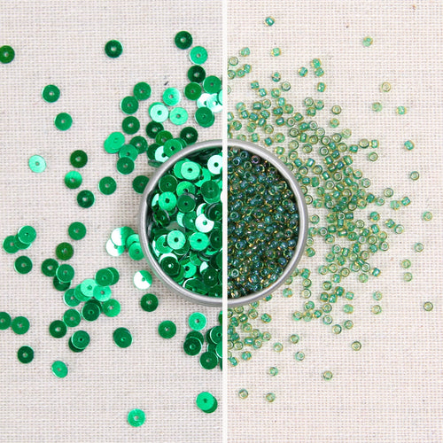 Metallic Kelly Green sequins coordinate with Kelly Green glass seed beads.
