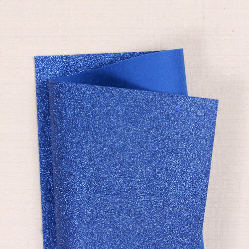 Add a bit of shine or a whole lot of sparkle with Benzie's glitter felt in classic Royal Blue. The best part? The glitter sticks just where it needs too-no messy fairy dust to clean up! Glitter felt is rough and sparkly on the glitter side and soft and smooth just like the felt you are used too! Felt side coordinates with our Blue Felt. Use any way you use regular felt. Approximately 1mm thick.