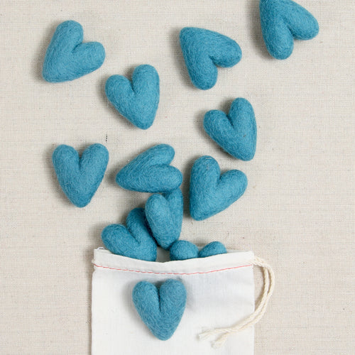 Sweet hand felted hearts are approximately 1 5/8" wide by 1 1/2" tall. Includes 12 hearts of one color. Other bright Sweethearts include Foxglove, Red, Butterscotch, Canary, Emerald and Dahlia.