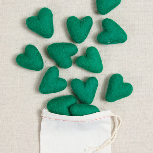 Sweet hand felted hearts are approximately 1 5/8" wide by 1 1/2" tall. Includes 12 hearts of one color. Other bright Sweethearts include Foxglove, Red, Butterscotch, Canary, Cerulean and Dahlia.