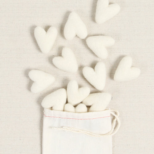 Sweet hand felted hearts are approximately 1 5/8" wide by 1 1/2" tall. Includes 12 hearts.
