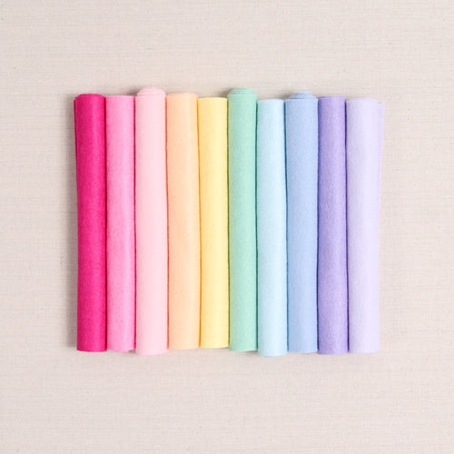 Say farewell to Fulfillment Team member Danielle. Danielle loved to see what the Benzie community was crafting and now loves to make her own felt florals -this palette is inspired by her favorite pastel felt flowers. Includes 10 sheets of wool blend felt in in Magenta, Flamingo, Peony, P