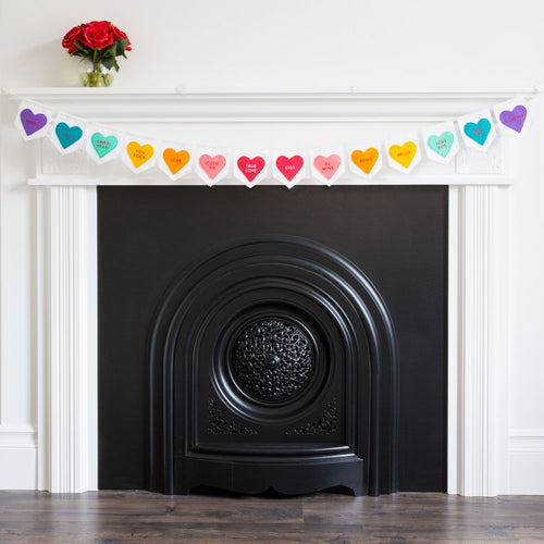Count down to Valentine's Day with this bold and bright conversation heart inspired banner calendar! Benzie's kit provides you with all the high-quality materials needed to handcraft this sweet decoration for your home. Pattern includes printed prompts you can fill out and place into the pockets of the calendar as you count down the days. Alternatively fill the pockets with candy, prizes, or whatever you wish. Finished calendar dimensions are 5 inches in length and approximately 55+ inches in width.