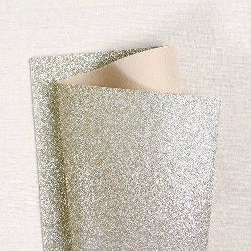 Add a bit of shine or a whole lot of sparkle with Benzie's glitter felt in White Gold. The best part? The glitter sticks just where it needs too-no messy fairy dust to clean up! Glitter felt is rough and sparkly on the glitter side and soft and smooth just like the felt you are used too! Felt side coordinates with Wool Blend Seaside felt or Bellwether Oyster. Use any way you use regular felt. Approximately 1mm thick.
