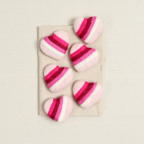 Banded with love, each heart includes colorful felted stripes to show your affection. Includes one heart, measures 2 1/2" x 2 1/4".