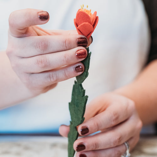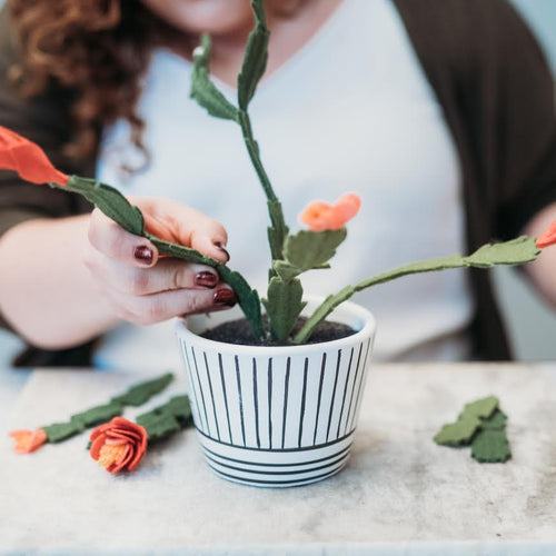 Use the add-on kit menu above to buy all the supplies you need to make your Christmas Cactus! For more pink-ish blooms, try Coral, Guava, and Peach felt for the flowers. You may also need craft pebbles and/or sand.