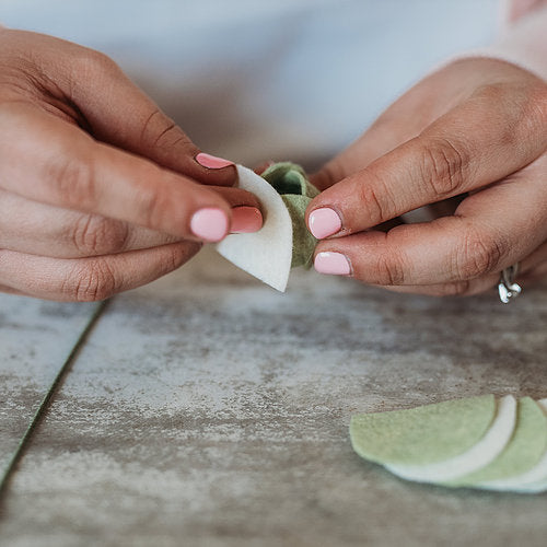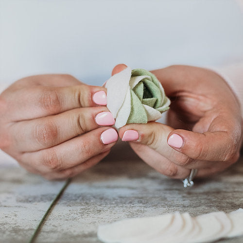 Ranunculus flowers look almost too perfect to be real. We're absolutely obsessed. The blossoms display layer upon layer of petals in a gorgeous array of colors. These exquisite flowers have become a staple in wedding bouquets, but make a stunning impact on any space in the home. Crafting this flower out of felt has been quite the adventure, but after loads of trial and error, we are pleased to let you in on our secrets!