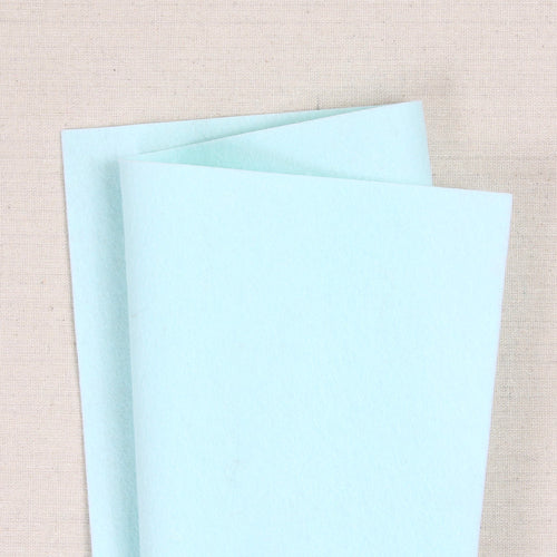 Pure 100% wool felt in soft Sea Mist. Select from 9x12" sheets or 12x18" sheets. Coordinating DMC six strand embroidery floss and Sulky appliqué thread is also available.