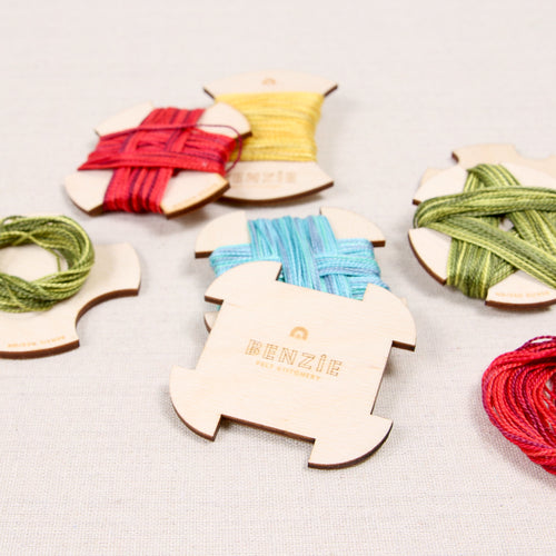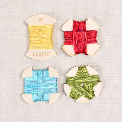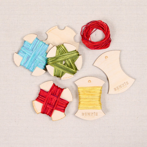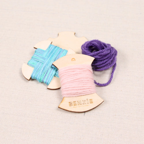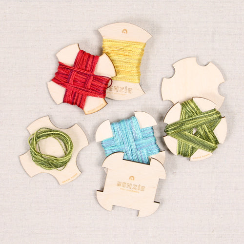 Includes a set of 4 thread winders cut from baltic wood. We love to use these to keep our tapestry wool and pearl cotton tidy! Each thread winder measures 2 1/2 - 3" wide.