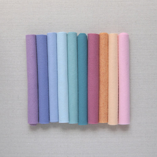 Benzie's wool blend felt in Periwinkle. This is a Benzie Reserve color, a special treat that you will not find in our swatch charts. Full bolts available for special order. Allow several weeks. Contact us for availability.