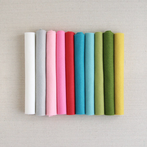 Our felt is a blend of 20-35% wool with the rest rayon; approximately 1mm thick. Our wool is only from merino sheep, prized for their quality and softness and making Benzie's felt strong, resistant to pilling, and colors vibrant.