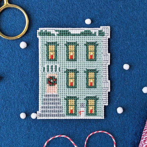 Our Holiday Homes series includes a festive neighborhood of Chalets, Townhomes and a cozy Cottage, all adorned with greenery and sparkly beads! This colorful kit includes all the supplies you need, plus stitching and beading instructions, to make one Townhouse.
