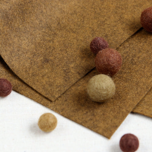 Benzie's wool blend felt in Acorn, one of our heathered colors. Select cut sheet or yardage -multiples of 1/2 yard cuts will yield one uncut sheet. Our bolts are approximately 36” wide. Full bolts are 40% off the retail price of cut sheets. Inventory on full bolts is limited, please contact us for availability.