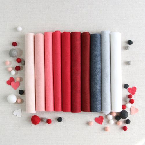 Benzie's wool blend felt in Graphite. Select cut sheets or yardage-multiples of 1/2 yard cuts will yield one uncut sheet. Our bolts are approximately 36" wide. Full bolts are 40% off the retail price of cut sheets. Inventory on full bolts is limited, please contact us for availability.