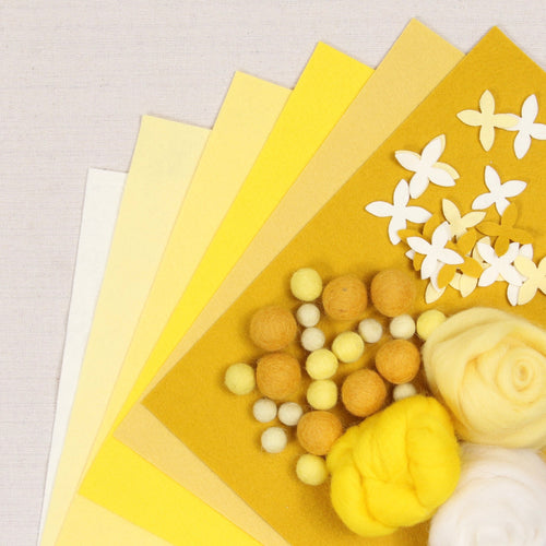 Benzie's wool blend felt in Lemonade. Select cut sheets or yardage-multiples of 1/2 yard cuts will yield one uncut sheet. Our bolts are approximately 36" wide. Full bolts are 40% off the retail price of cut sheets. Inventory on full bolts is limited, please contact us for availability.