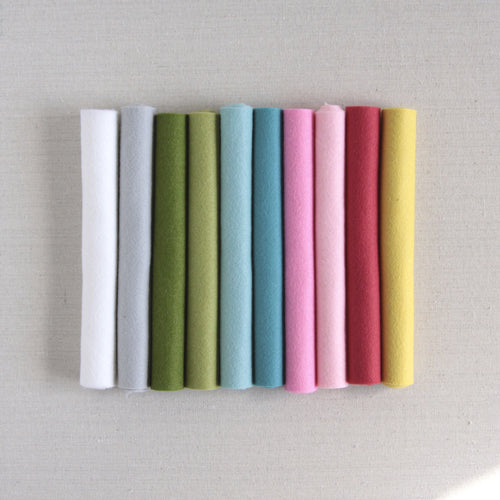 Our felt is a blend of 20-35% wool with the rest rayon; approximately 1mm thick. Our wool is only from merino sheep, prized for their quality and softness and making Benzie's felt strong, resistant to pilling, and colors vibrant.