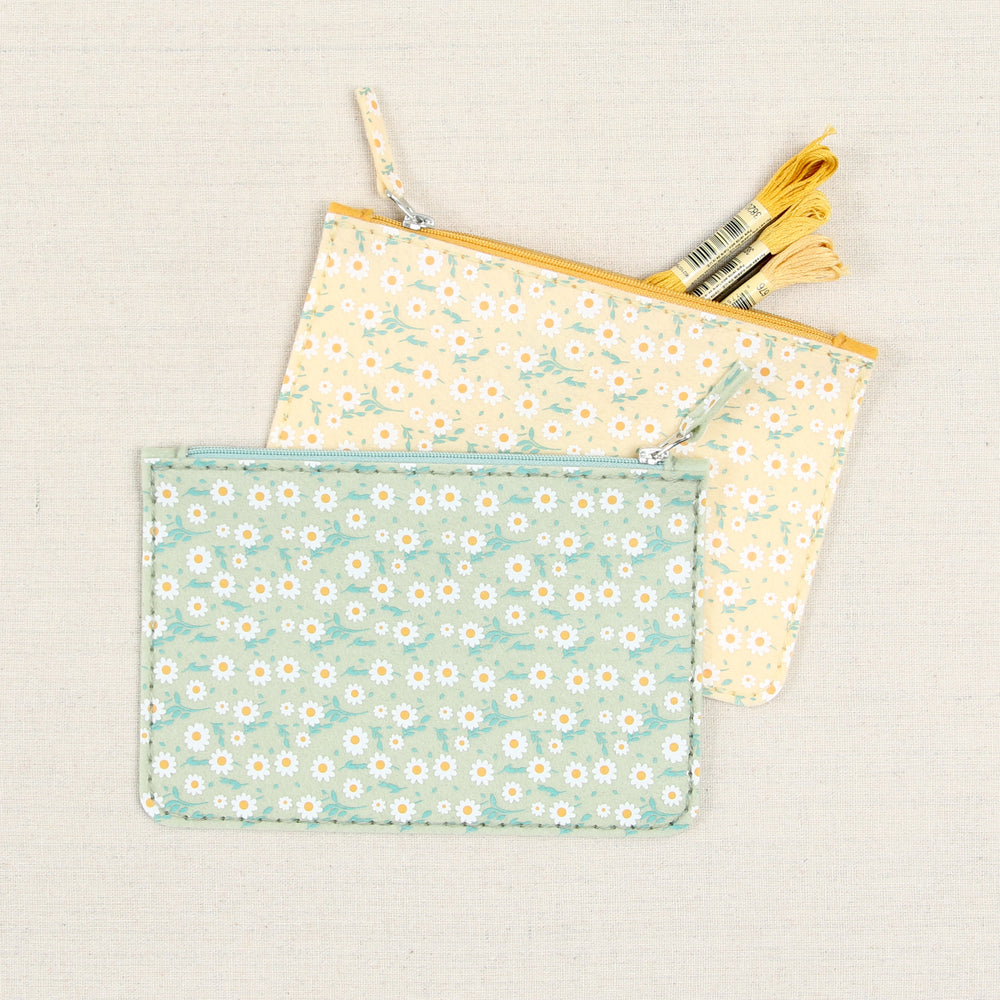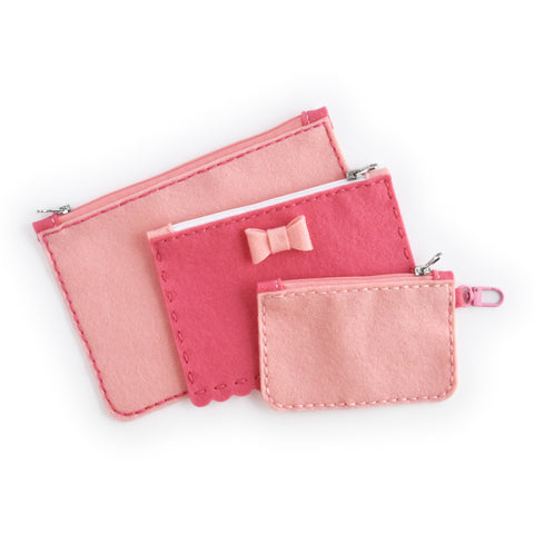 This might be the easiest zipper pouch you'll ever make! Stitch marks allow you to hand-sew the entire project out of felt, and the set includes three sizes (two with round corners and one with a scalloped edge), zipper ends, and a bow that features a piece doubling as a key clip tab. See our tutorial for how to assemble the pouches.