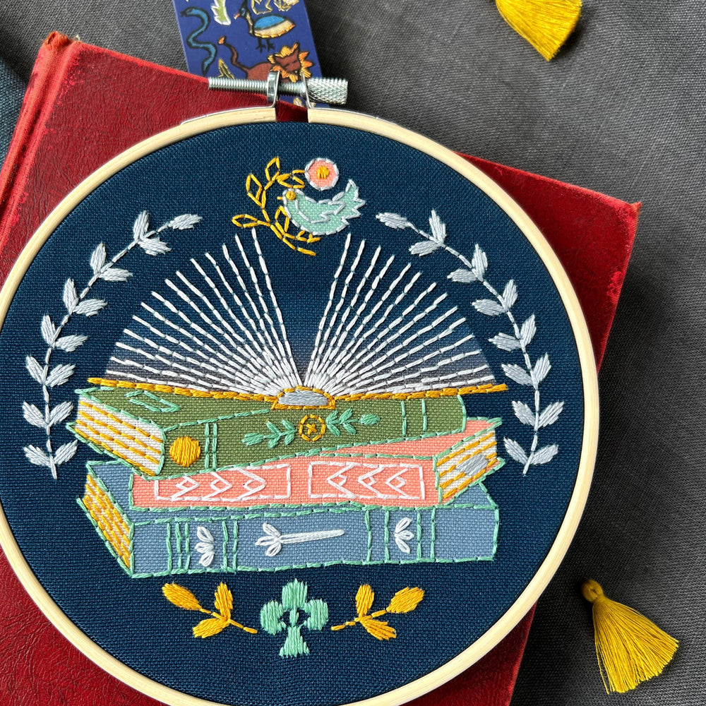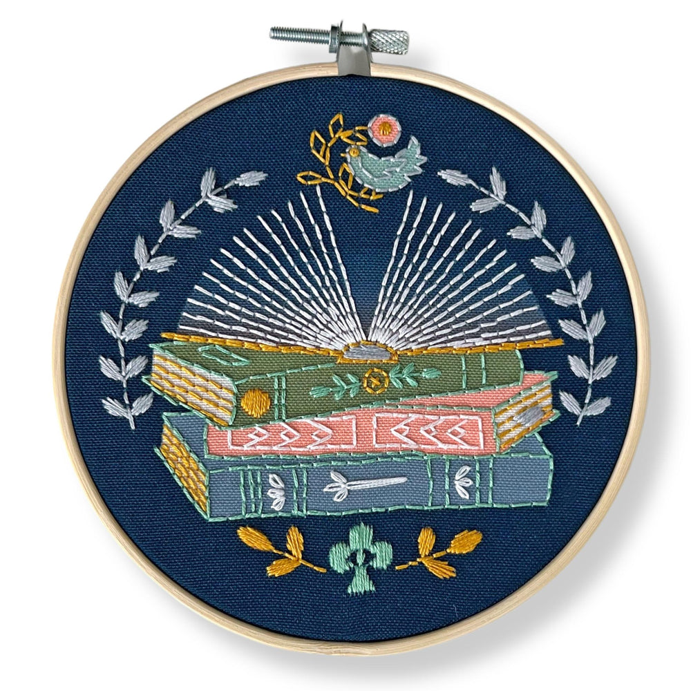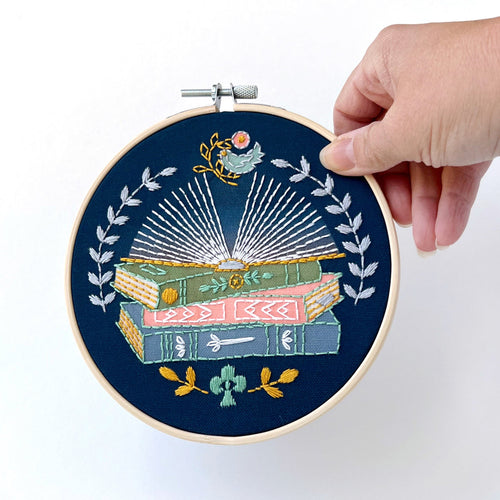 Celebrate your love of reading with this lovely stack of books. This book lover's embroidery kit would look so nice propped-up on your bookshelf next to your favorite novel!