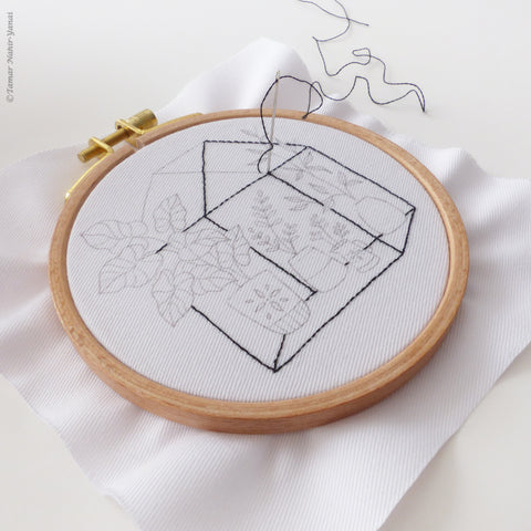 Just follow the stitching and color guides to complete your own embroidery art! Includes printed pattern, instructions, embroidery thread and needle. This kit does not include an embroidery hoop -we recommend a 4" size here! Designed by Tamar Nahir-Yanai.