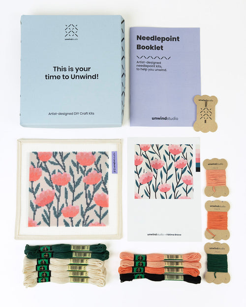 - Needlepoint booklet with instructions on starting needlepoint, tips for selecting needlepoint stitches, and a library of favorite stitches