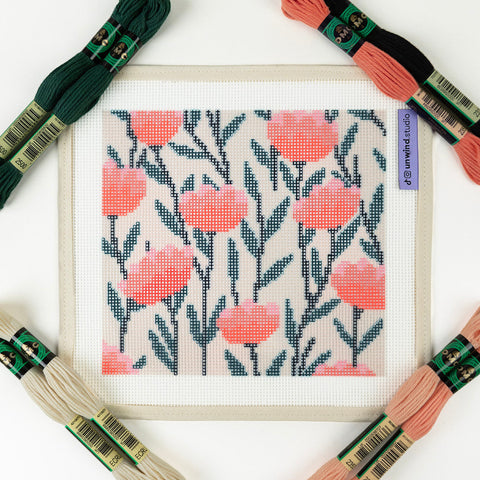 - Threads with enough quantity to stitch with the continental tent stitch