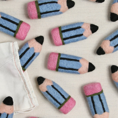 Celebrate teachers and back to school time with felted colored pencils! Includes one pencil that measures approximately 4 1/2 x 1 1/4" wide.
