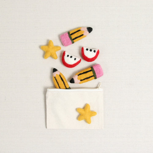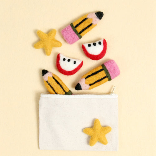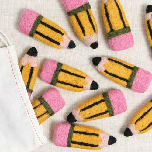 Celebrate teachers and back to school time with felted pencils! Includes one pencil that measures approximately 4 1/2 x 1 1/4" wide.