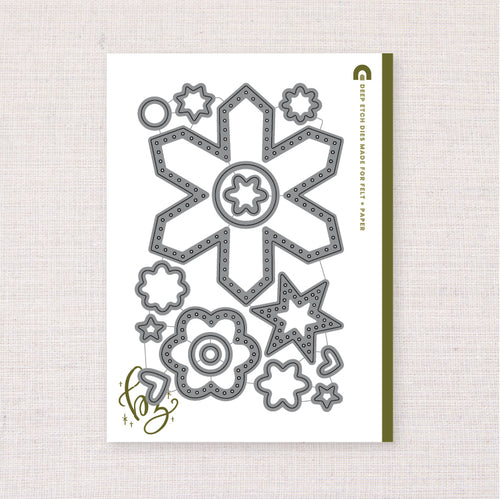 These felt ornament dies are perfect for wintertime! Easily stitch up dozens of stuffed snowflakes utilizing the included stitch marks! Create endless styles of snowflakes -just mix and match colors as you go! Learn how to make these on our blog. Finished size is approximately 4.5" x 5". Look for the other dies by BZ Creations -the accent pieces can all be used interchangeably!