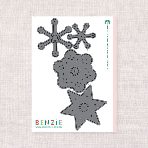 Extra deep, wafer thin dies are designed to cut Benzie’s Wool Blend Felt, Bellwether 100% wool felt and Felted Wool with ease. Works equally well with paper and cardstock too! Dies compatible with most manual die cut machines; use Benzie Design's Metal Shim when needed.