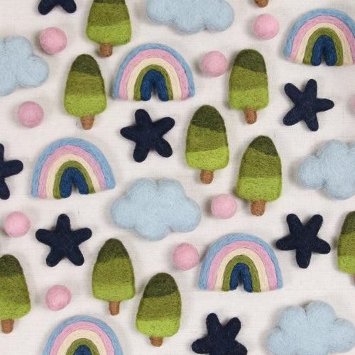 Our hand-formed pom-poms, balls and shapes are approximate in size and can vary in diameter and dye lot. All details are unique and personalized, please expect differences in poms and shapes. Handmade in Nepal.