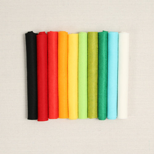 Selected by icon Mary Engelbreit, these colors make up the illustrations we grew up loving. Includes ten colors in *Bellwether Black, *Cherry Red, Carmine, Tangerine, Dandelion, Chartreuse, Citron, Kelly, *Capri and Bellwether Ecru. Coordinating DMC floss is also available. *Indicates Bellwether 100% felt