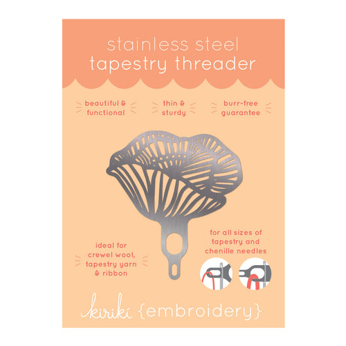 Thread your needles with ease with this stainless steel needle threader! Threaders sometimes get a bad rap because we've all broken those flimsy wire ones after a single use, but solid body threaders are regarded as the best, and these are not only functional but add a bit of beauty to your toolkit, too! These threaders are extremely high quality, completely smooth, durable and made in Canada.