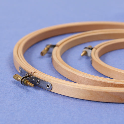 High quality, wooden hoops to display your most precious works of art. We love the rounded edges. Works for all kinds of crafts, from embroidery and cross-stitching to wall hanging. In six sizes: 3", 4", 5", 6", 8" and 10". 6/8" thick. Order one or a bunch. Originally Frank A. Edmunds, now Colonial.