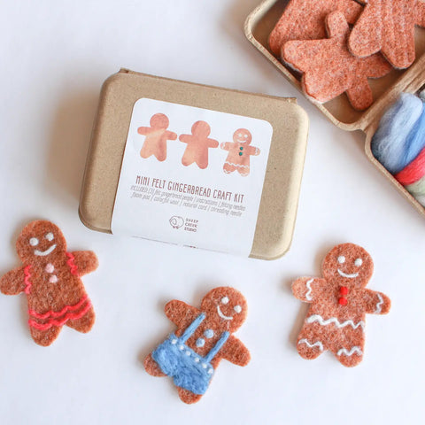 This mini kit is perfect size for a stocking stuffer, or fun and quick holiday crafting with kids. A wonderful project for eye-hand coordination and inspiring creativity! A high quality, approachable Needle Felting Craft Kit that invites beginners & beyond to experience the joy of felting wool. Following simple instructions, crafters add cute faces and outfits to gingerbread people. They will find enjoyment beyond honing the craft itself, as they can string the decorated cookies to make ornaments for decorating, or use as table place settings, or gift toppers.