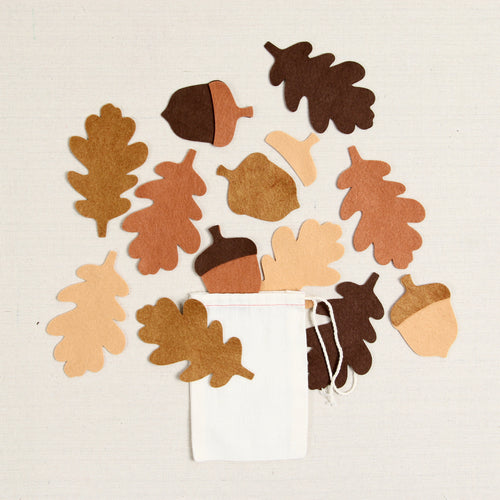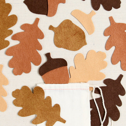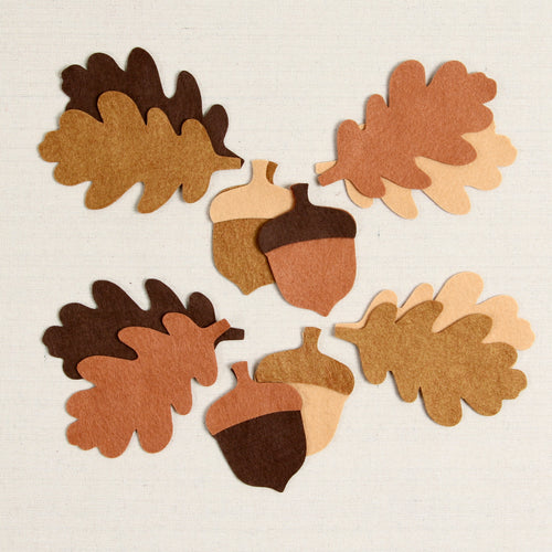 Easily incorporate felt leaves and acorns into your fall crafting! Includes 8 oak leaves and 4 acorns. Oak leaf measures about 4 1/2 x 2 3/4". Acorn measures 2 3/4" x 2". Standard hues include Nutmeg, Cinnamon, Toast and Brown or select a custom palette of up to four colors!