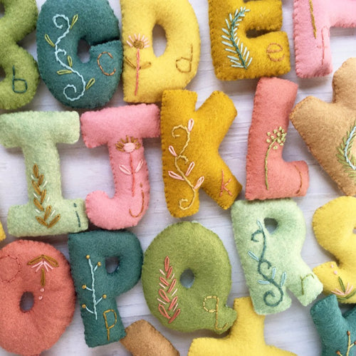 Select the coordinating felt and floss palette for the Alphabet Felt Pattern.