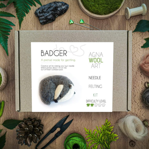 The Badger Needle Felting Kit is designed and created by Polish artist Agna. Agna has over 10 years of needle felting experience and shares her love for wool with you through her designs. Even if you don’t have a lot of experience with wool, this simple kit will allow you to create a beautiful figurine that can be used as a decoration, toy or a pretty, hand-made gift for someone. Try it out for yourself and join the community of happy wool-lovers!