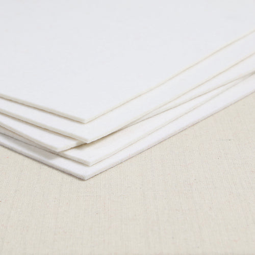Thick 3mm felt in soft Bellwether White. Due to the natural fiber content, this is not a bright white but the brightest white available in 100% wool. Select one 9x12" sheet or one 12x18" sheet.