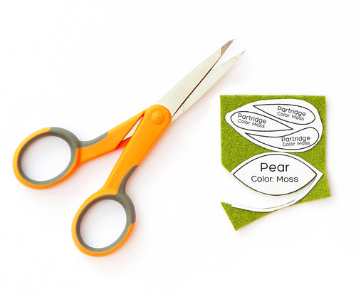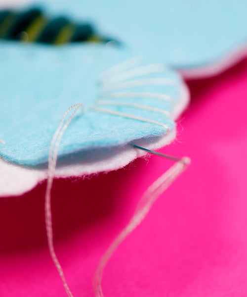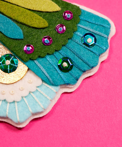 This DIY ornament kit includes all the materials you need to make a blue moth ornament (except for glue, scissors and scalloped shears). The pattern is preprinted onto transfer material, so all you have to do is stick it on the felt and cut out the pieces. Then you are ready to assemble this beautiful ornament. Designed by Lolli and Grace.
