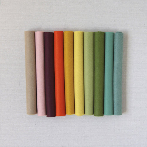 Our felt is a blend of 20-35% wool with the rest rayon; approximately 1mm thick. Our wool is only from merino sheep, prized for their quality and softness and making Benzie's felt strong, resistant to pilling, and colors vibrant.