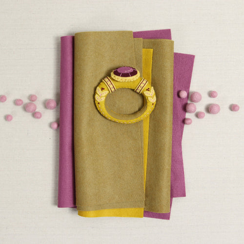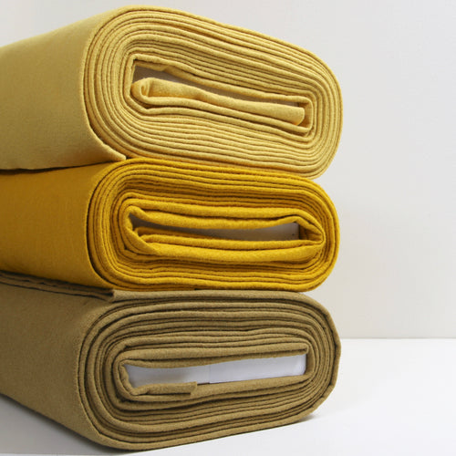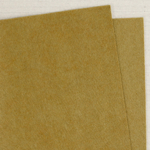 Benzie's wool blend felt in Bronze, a bronzy gold tone. Select cut sheet or yardage-multiples of 1/2 yard cuts will yield one uncut sheet. Our bolts are approximately 36" wide. Full bolts are 40% off the retail price of cut sheets. Inventory on full bolts is limited, please contact us for availability.