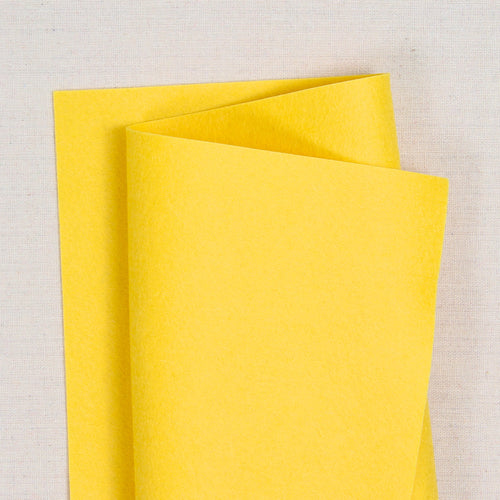 Pure 100% wool felt in a Canary Yellow. Select from 9x12" sheets or 12x18" sheets. Coordinating DMC six strand embroidery floss and Sulky appliqué thread is also available.