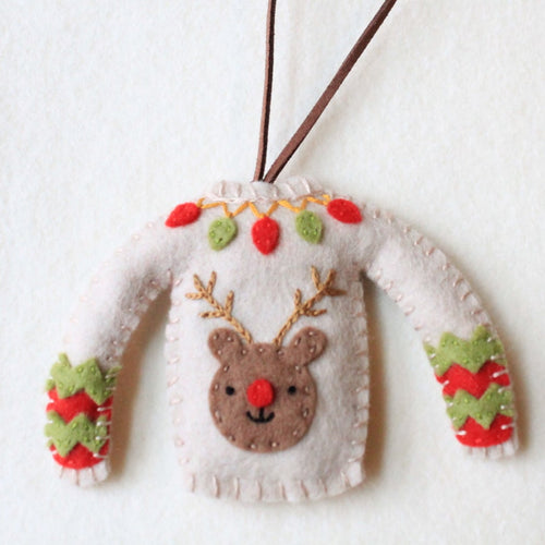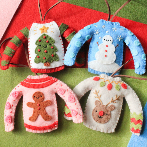 Festive and cozy felt sweater ornaments to embellish your tree and gifts! Advanced embroidery artists and beginners alike can use this pattern. PDF includes step-by-step instructions and stitch diagrams for four different variations.