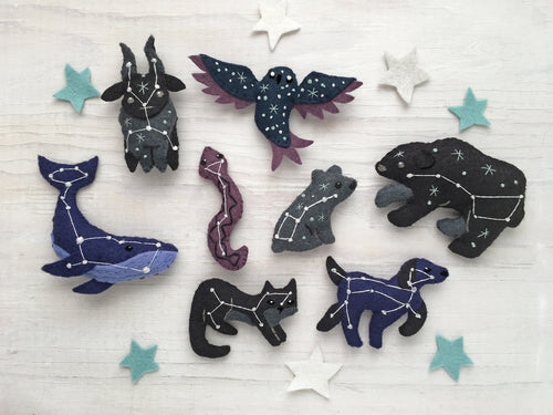 Stitch up your own starry night sky with these celestial felt animals inspired by constellations. Try using Glow-in-the-Dark floss to make those stars really shine!